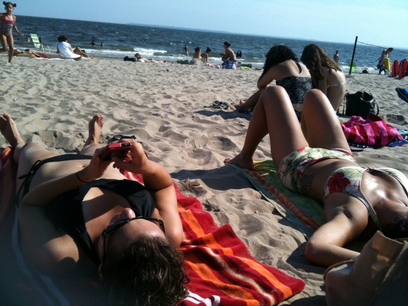 My two best beach girlfriends and I took a shot at Brighton Beach the other day and I thoroughly enjoyed myself. I have been known to frequent Long Beach, NY, which is accessible from the LIRR, but this will cost you about $11 one way, you have to change at Jamaica, and it now costs a whopping $12 to get on the beach (up $2 from last summer). To be fair to Long Beach, it does offer beautiful clean white sand beaches and a large variety of restaurants and shops and the LIRR does offer a beach special that costs $20 for a round trip train ticket and a beach pass, so it does save you a lot of money. Brighton Beach is still a good choice, because it is right off of the subway and the beach is, wait for it: FREE! I always love the beach, but it is especially lovely when you have just taught five hours of summer school and you have packed a cooler of goodness (the sangria recipe on my cook page is great in a huge thermos, but don't forget cups!) Don't worry if you don't plan ahead and bring your own happy beverages, because there are lovely men on the beach who sell mixed drinks and beers out of their backpacks!